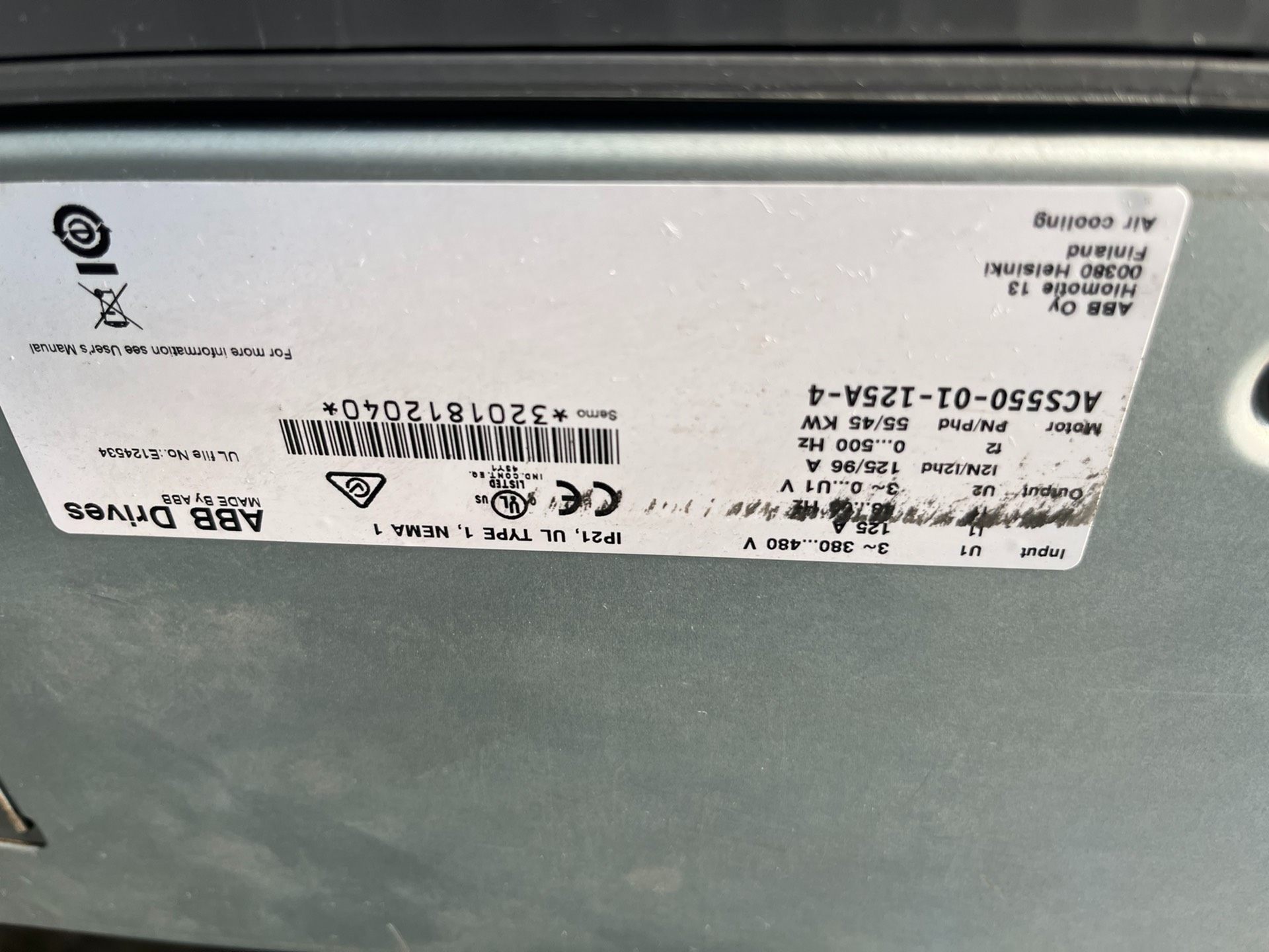 ABB变频器ACS580-01-124A-4+K475原装拆