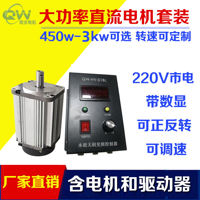 大功率直流无刷电机1000w1.5kw2/3kw 220v无刷电机驱动控制器套装