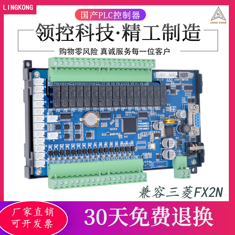 国产领控PLC工控板 ZK2N/LK2N 带模拟量温度称重FX2N可编程控制器