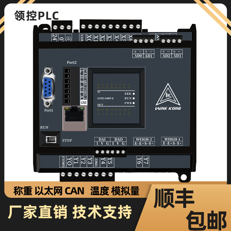 领控GT/GX3U国产PLC工控板兼容FX3U 带模拟量温度CAN可编程控制器