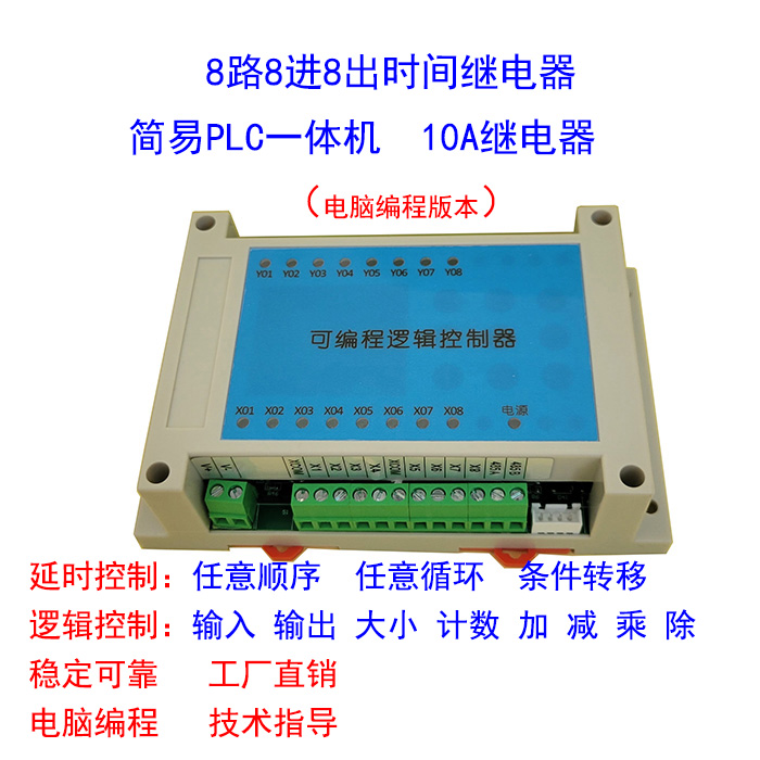 8进8出8路多路时间继电器可编程控制器气缸电磁阀简易PLC一体机