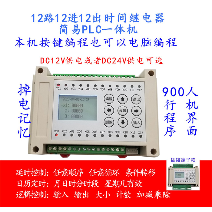 12路进12路输出时间继电器可编程控制器气缸电磁阀简易PLC一体机