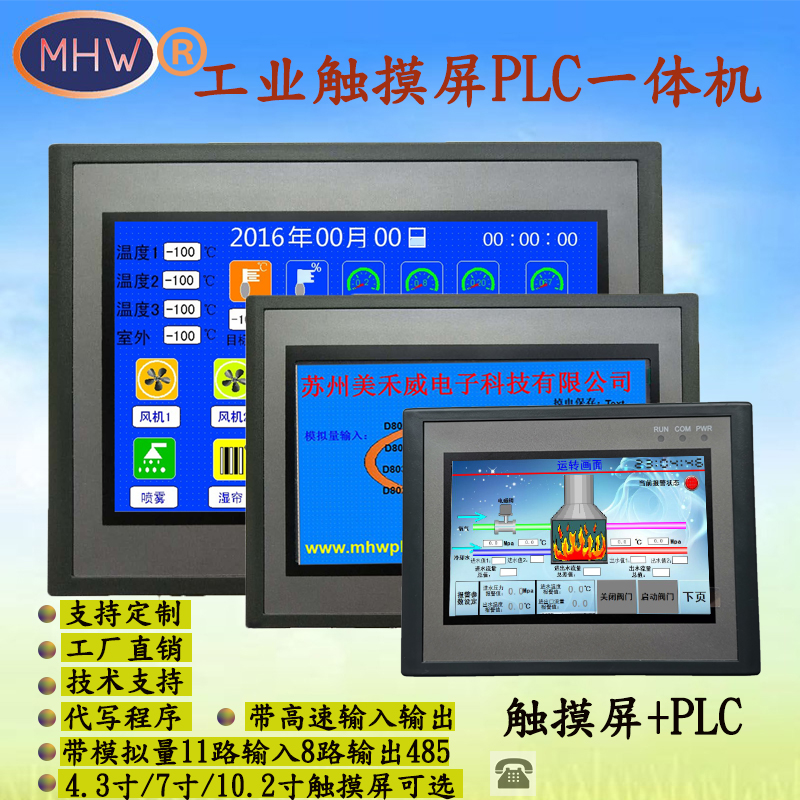 触摸屏PLC一体机AD温度4.3运动7寸10国产可编程控制器485人机界面