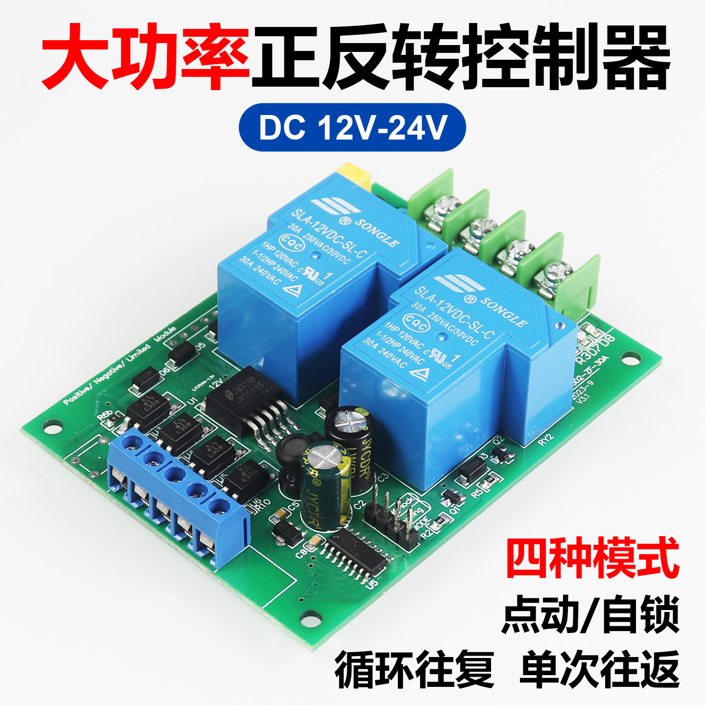 12V24V直流电机正反转控制器30A继电器驱动升降控制模块带限位