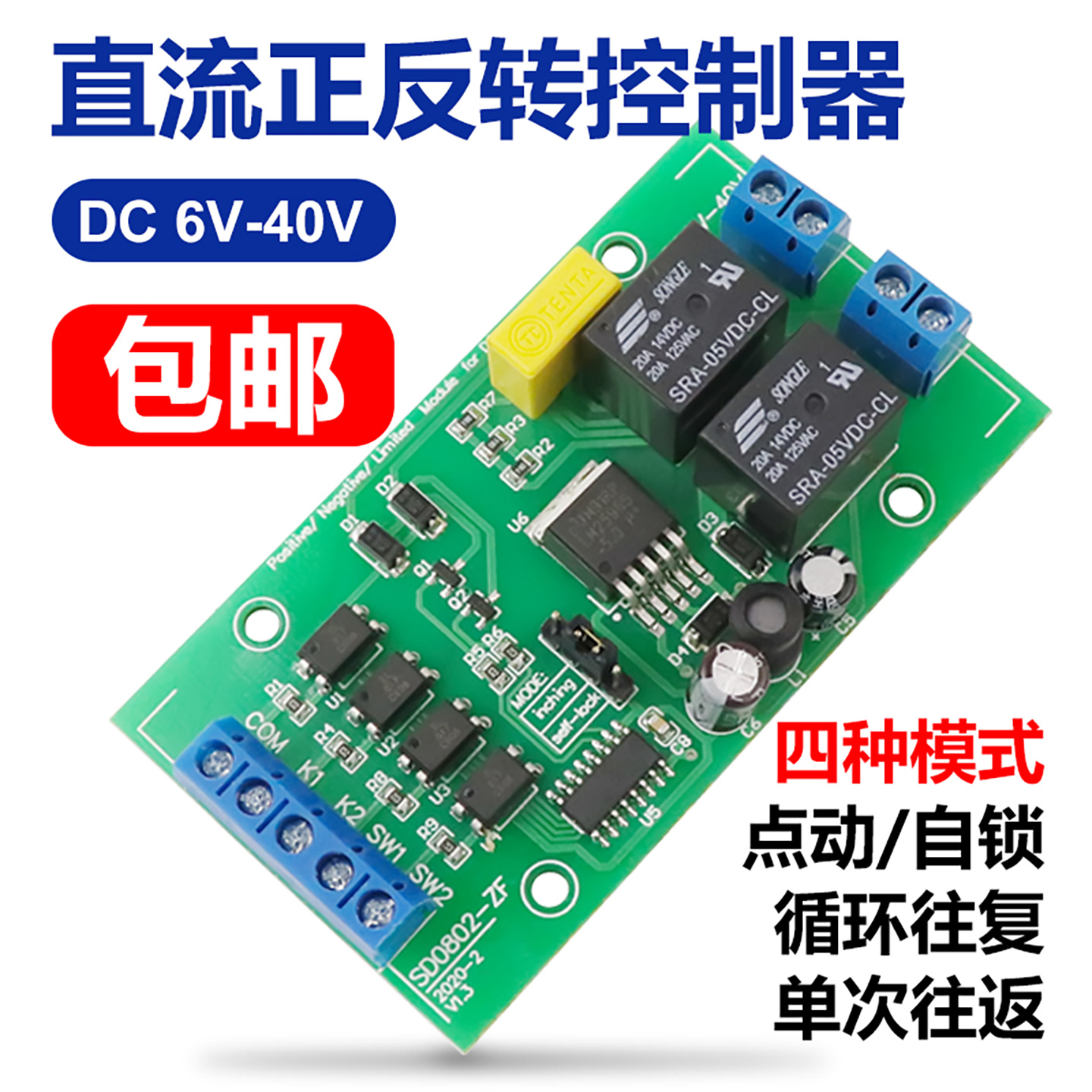 6V12V24V直流电机正反转控制器宽电压继电器驱动升降控制模块限位