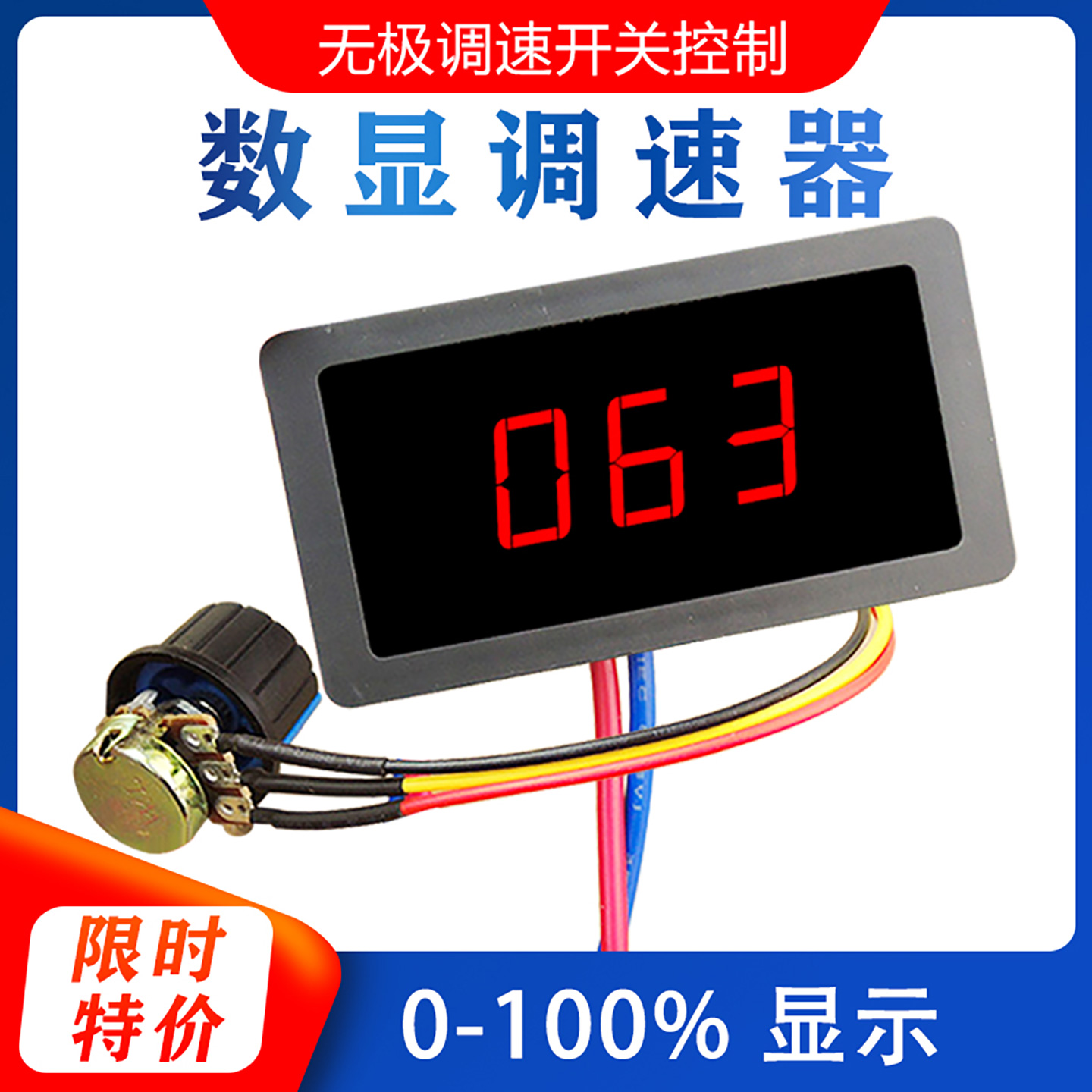 数显PWM直流电机调速器6V12V24V减速马达无极调速开关调温控制器