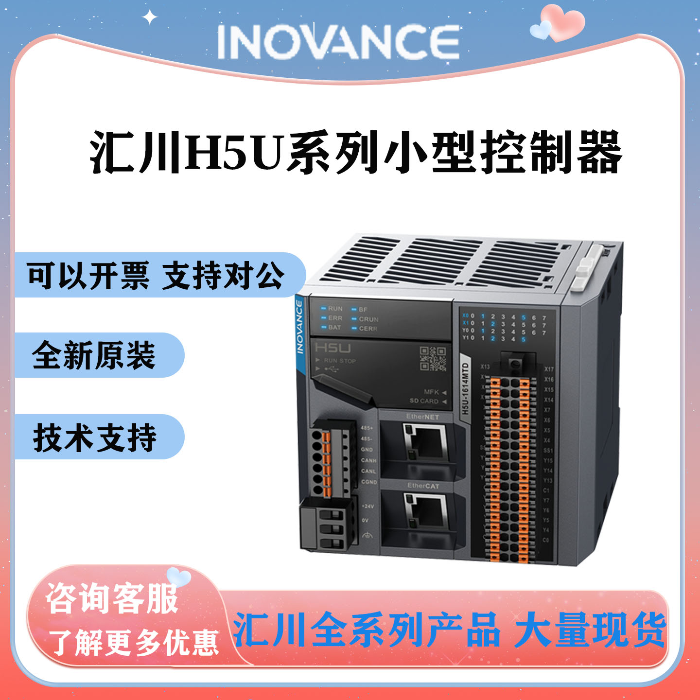 汇川h5u系列plc小型控制器8轴/16轴/32轴GL10模块全新原装汇川plc