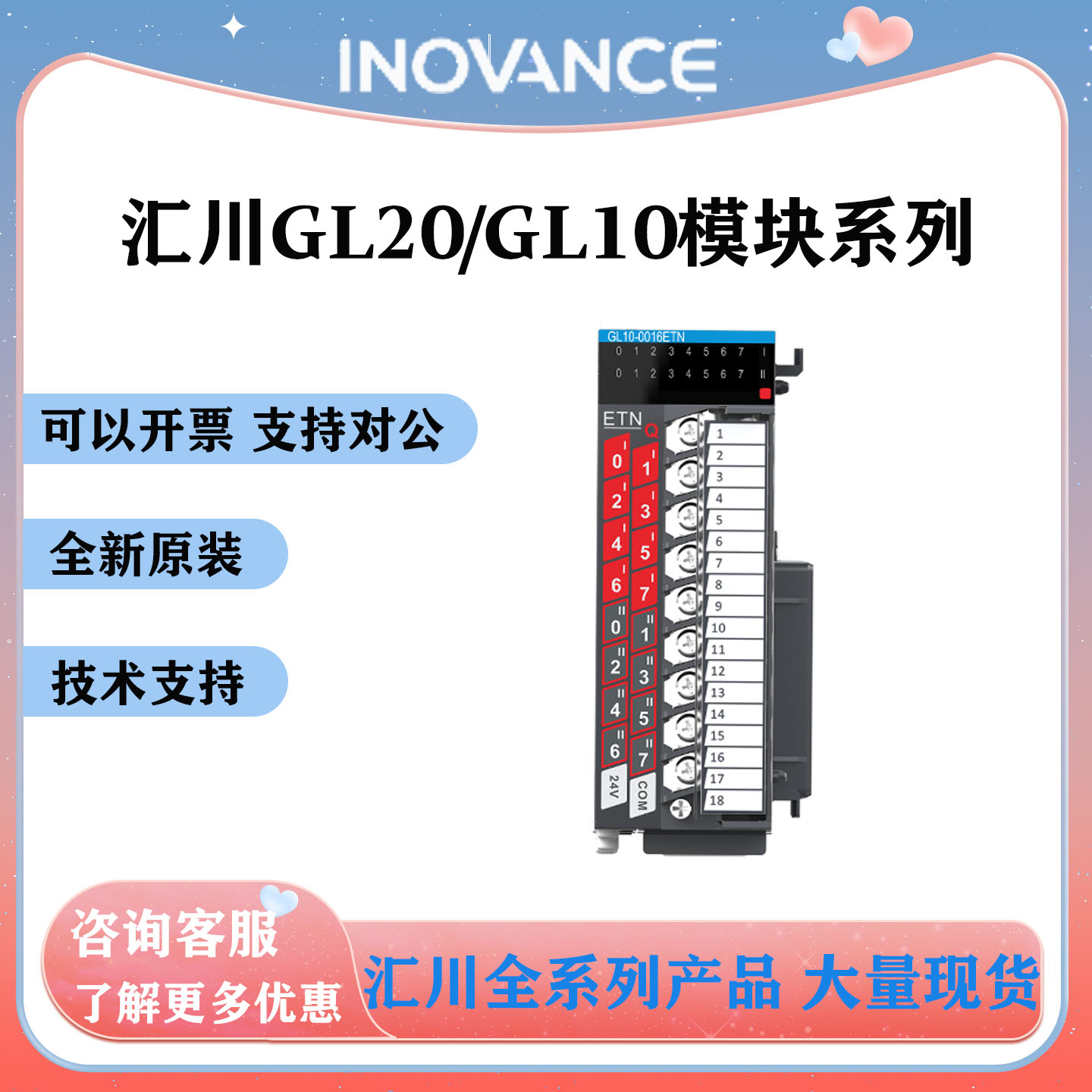 汇川plc扩展模块远程IO模块GL10/GL20-1600/0016/4AD/4