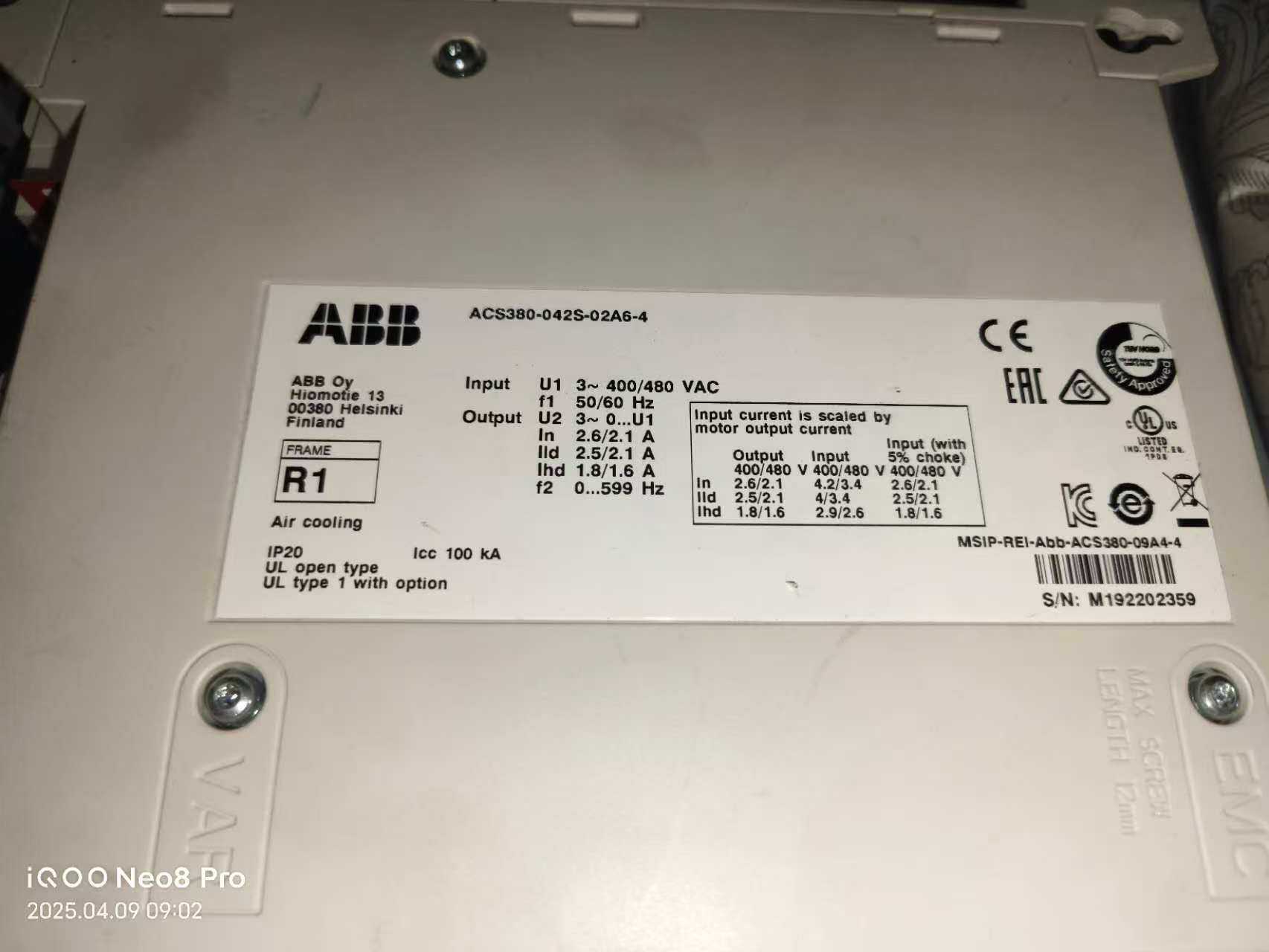 ABB变频器ACS380系列,型号ACS380-042S-0