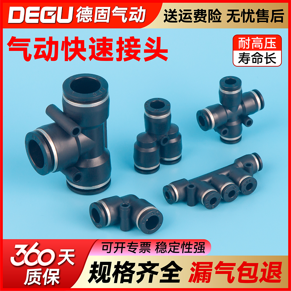 气缸气管快速接头直通PG/三通PE/PY4 6 12/PEG/PW变径10-8m