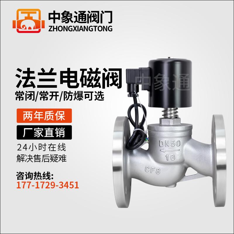 电磁阀进水高温高压蒸汽常闭24V/220V不锈钢法兰防爆燃气切断阀