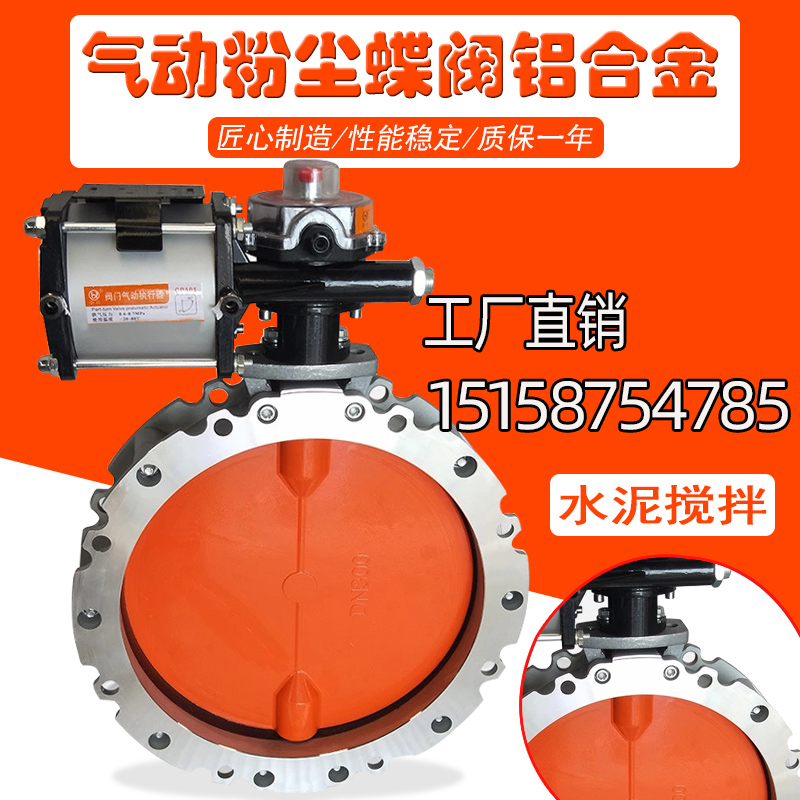 气动粉尘蝶阀铝合金单/双法兰水泥搅拌站粉体不锈钢蝶阀DN100-600
