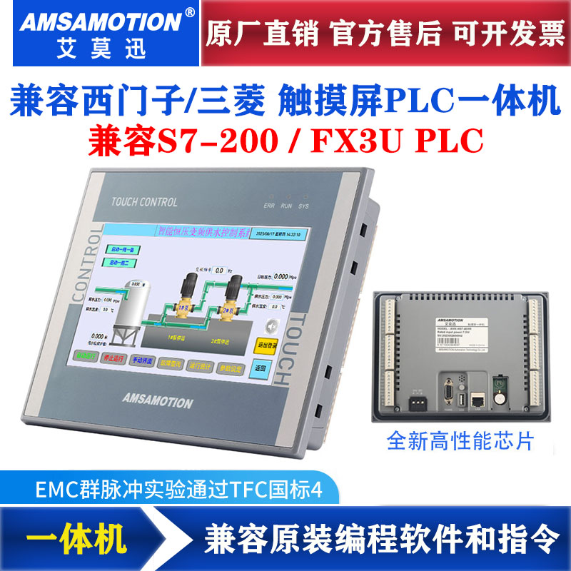 艾莫迅触摸屏PLC一体机 200smart/3U/7寸嵌入式工控屏HSE7A-3