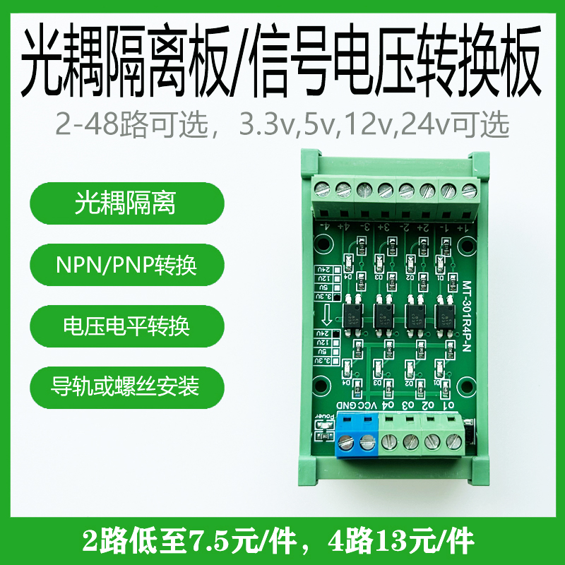 标准PLC工控机IO卡单片机TTL光耦隔离板PNP转NPN互转电压信号转换