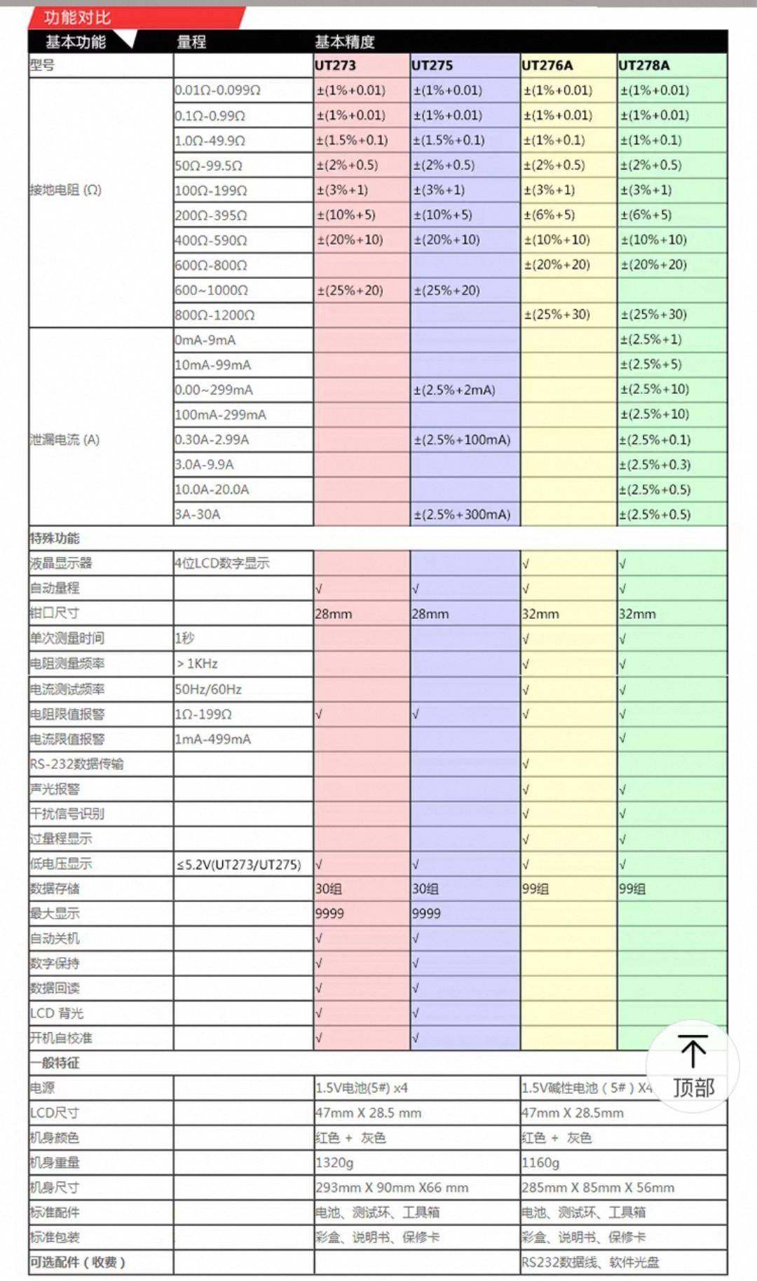 > 新的优利德UT275数字钳形接地电阻测试仪。可测接地电阻和泄露电
