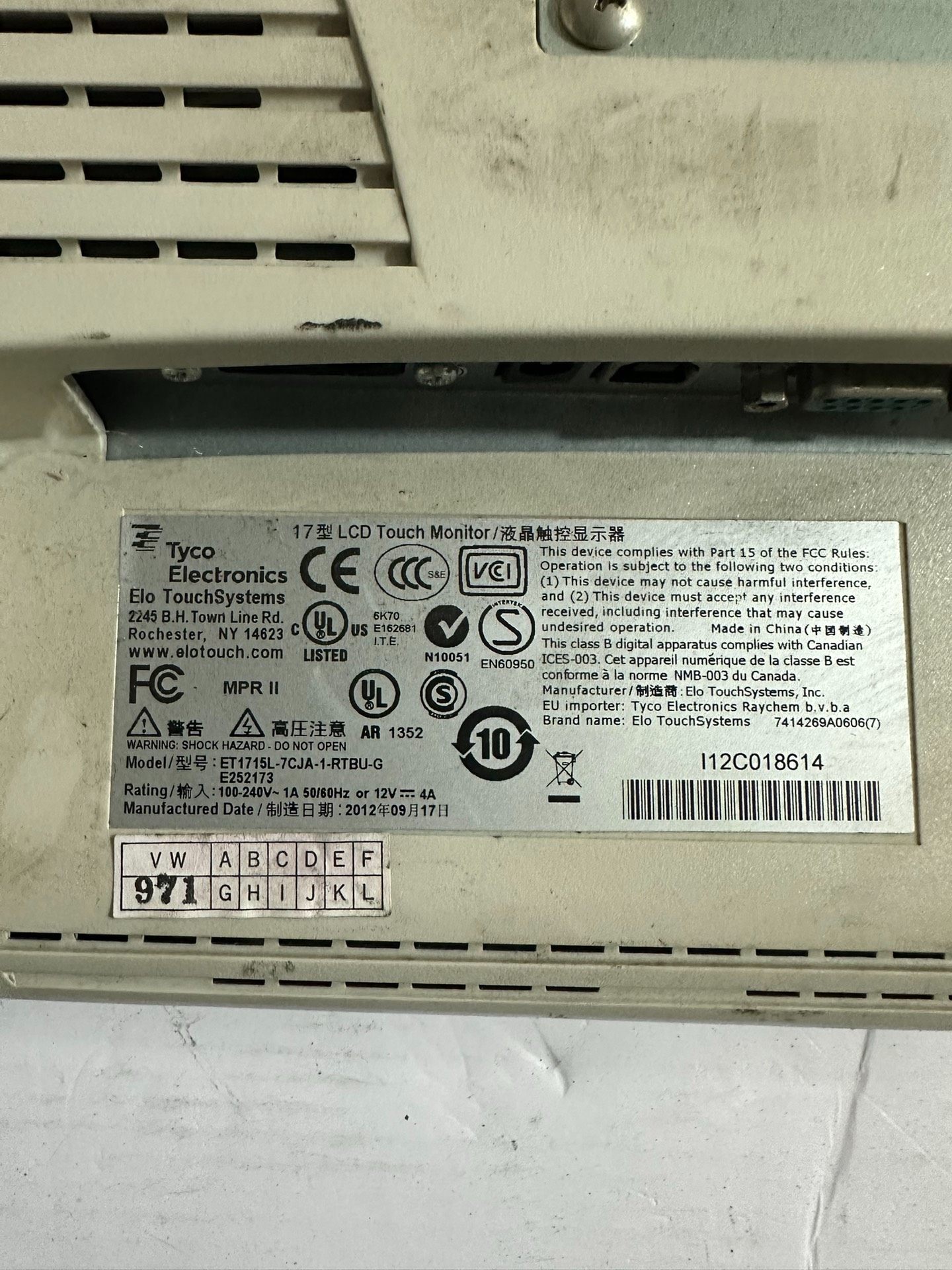 EIO进口触摸屏显示器,型号ET1715L-7CJA-1-R