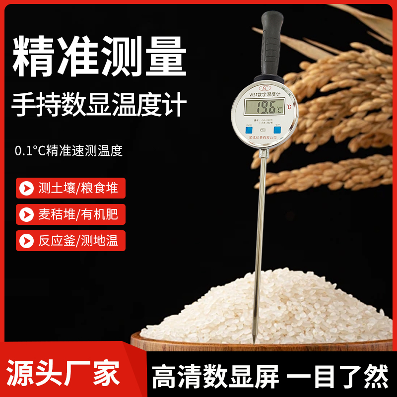 插入式手持工业数显温度计粮食堆有机肥地温发酵池加长探针测温仪