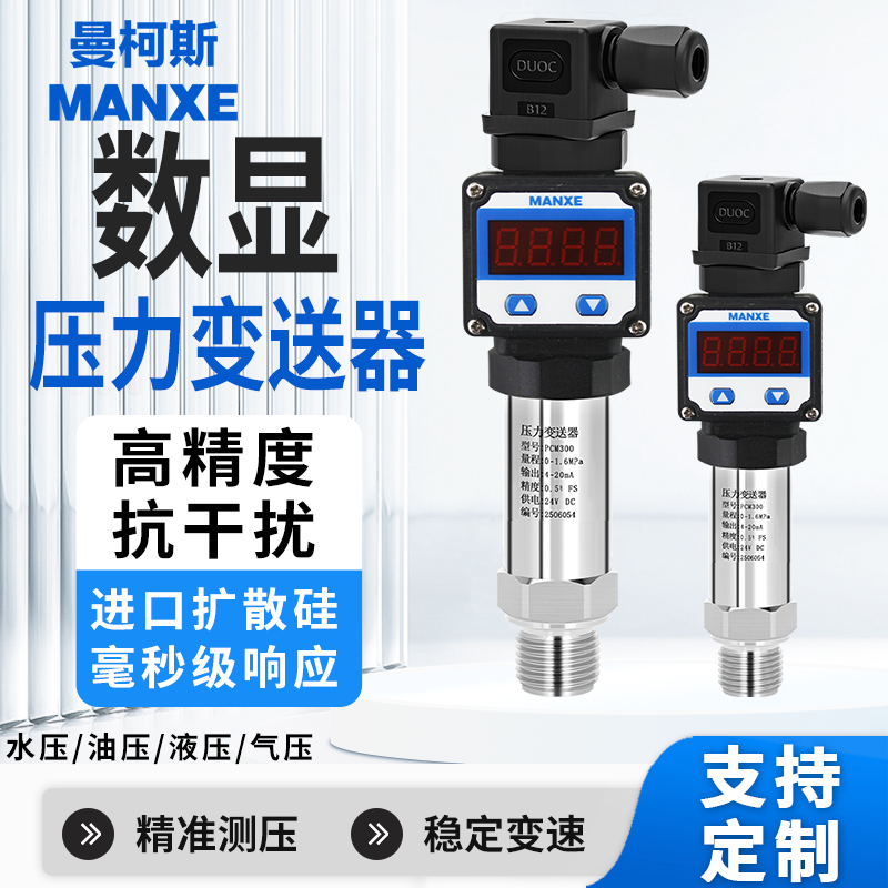 PCM300 LED扩散硅数显压力变送器4-20mA高精度现场显示压力变送器