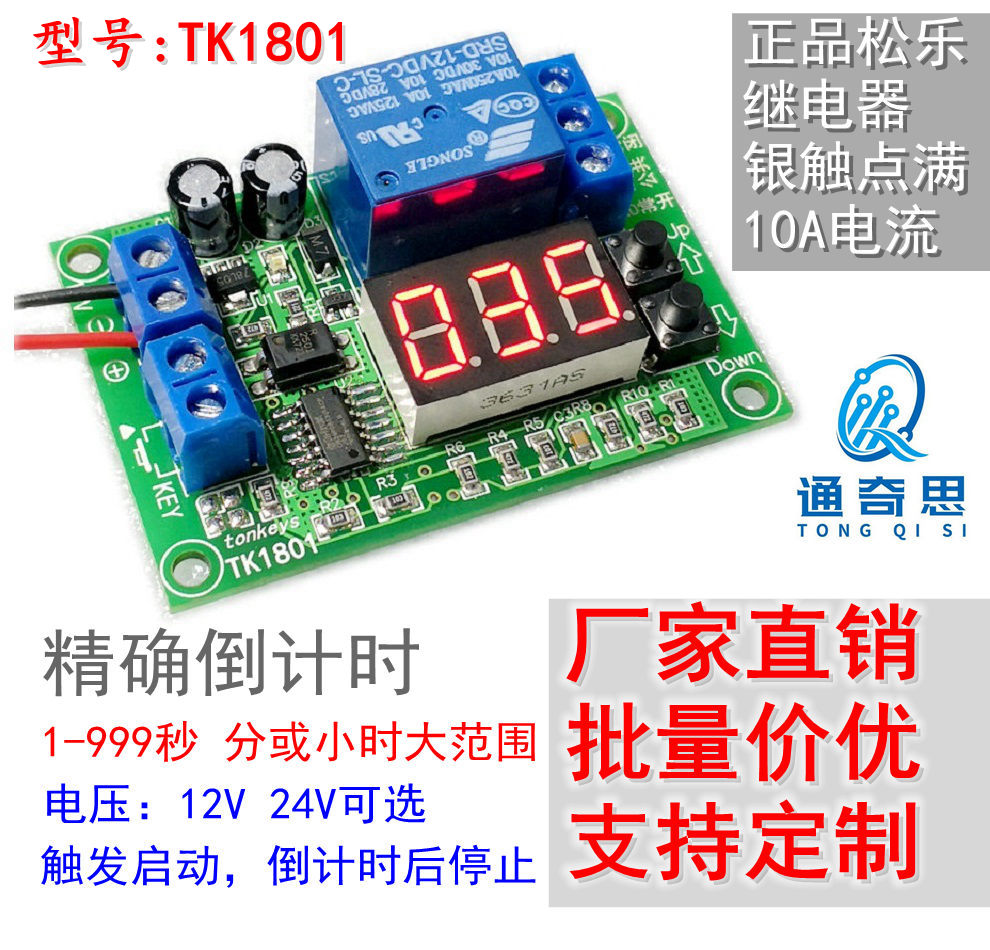 3位数显时间继电器模块触发启动计时停止动态显示按钮调节 可定制