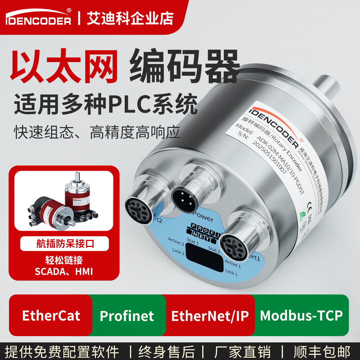 总线式工业以太网绝对值编码器PN/DP/EtherCAT/Modbus-TCP传