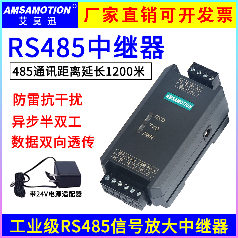 艾莫迅rs485中继器工业级高性能光电隔离信号抗干扰模块延长放大