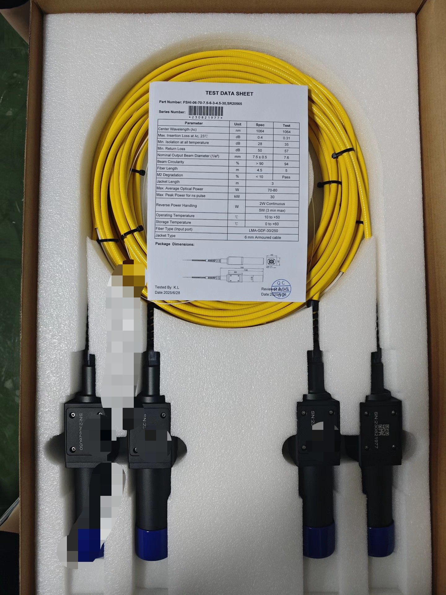 30/250,3米隔离器,70瓦以下激光器都可以用